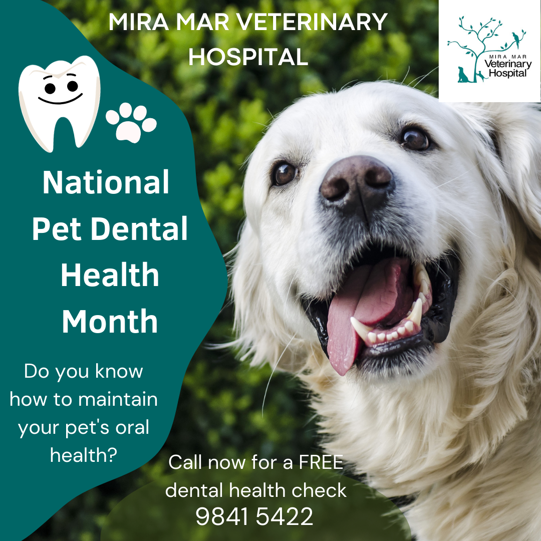 Each year Mira Mar Vets celebrates National Pet Dental Month in August by raising awareness of pet dental health.