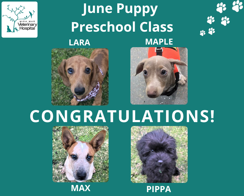 The past few months have been quiet for puppy preschool, while Vet Nurse Jodie has taken some well-earned holiday time! This little bunch of cuties graduated back at the end of June, aren't they the sweetest?
