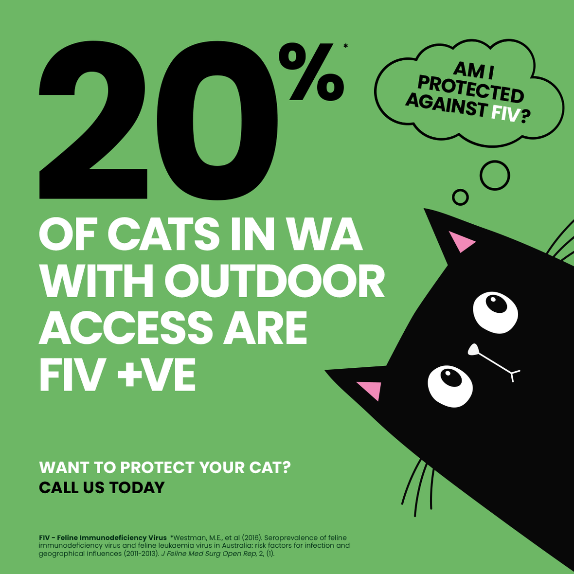 We're also happy to share that Feline Immunodeficiency Virus (FIV) vaccinations are now available again. If your cat goes outside, they could be at risk since FIV is typically spread through fights with infected cats and has no cure.
